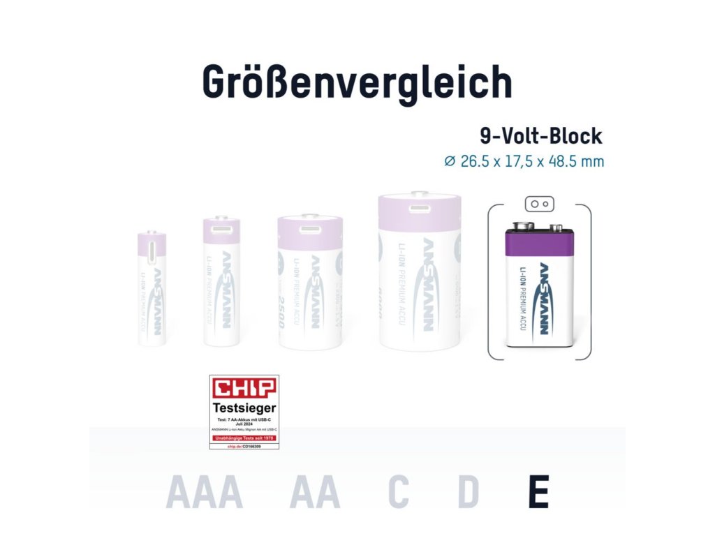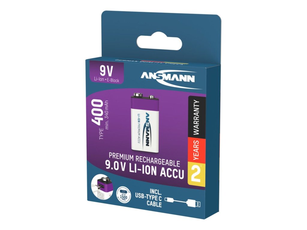 AKKU 9V-Bl./USB-C 9V E-Block Li-Ion 9V 400mAh USB-C Ladung 1er Pack
