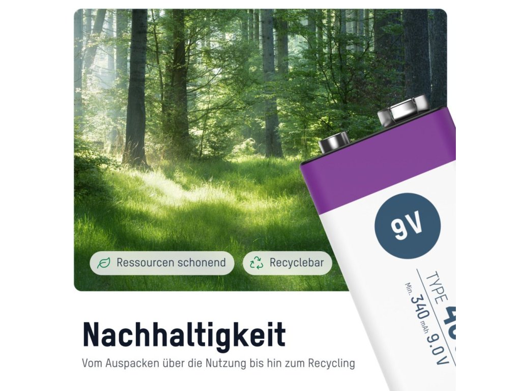 • Stabile Spannung von 9 V über den kompletten Einsatzzeitraum