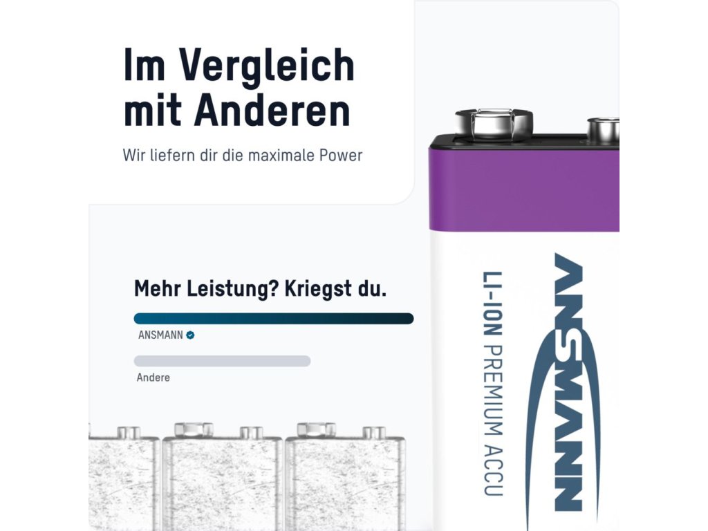 • Hochwertige ANSMANN Lithium Batterie 9V E-Block mit Schutzbeschaltung