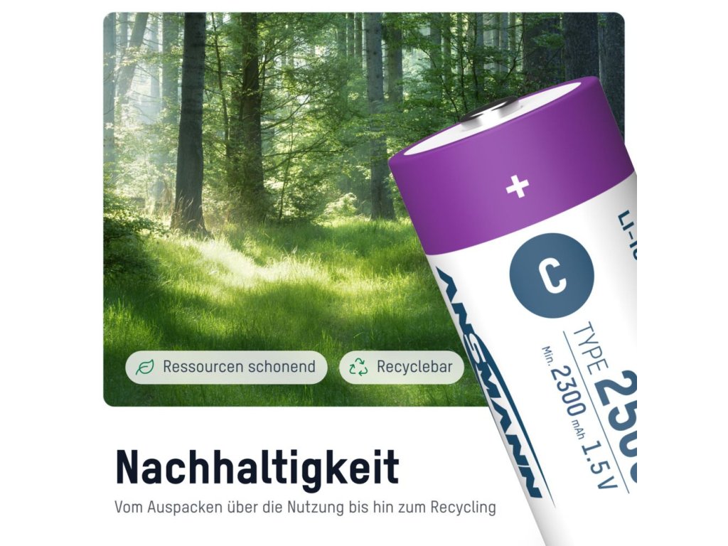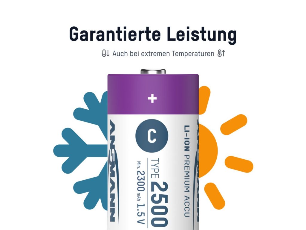 • Hochwertiger ANSMANN Lithium-Ion Akku Baby C mit Schutzbeschaltung