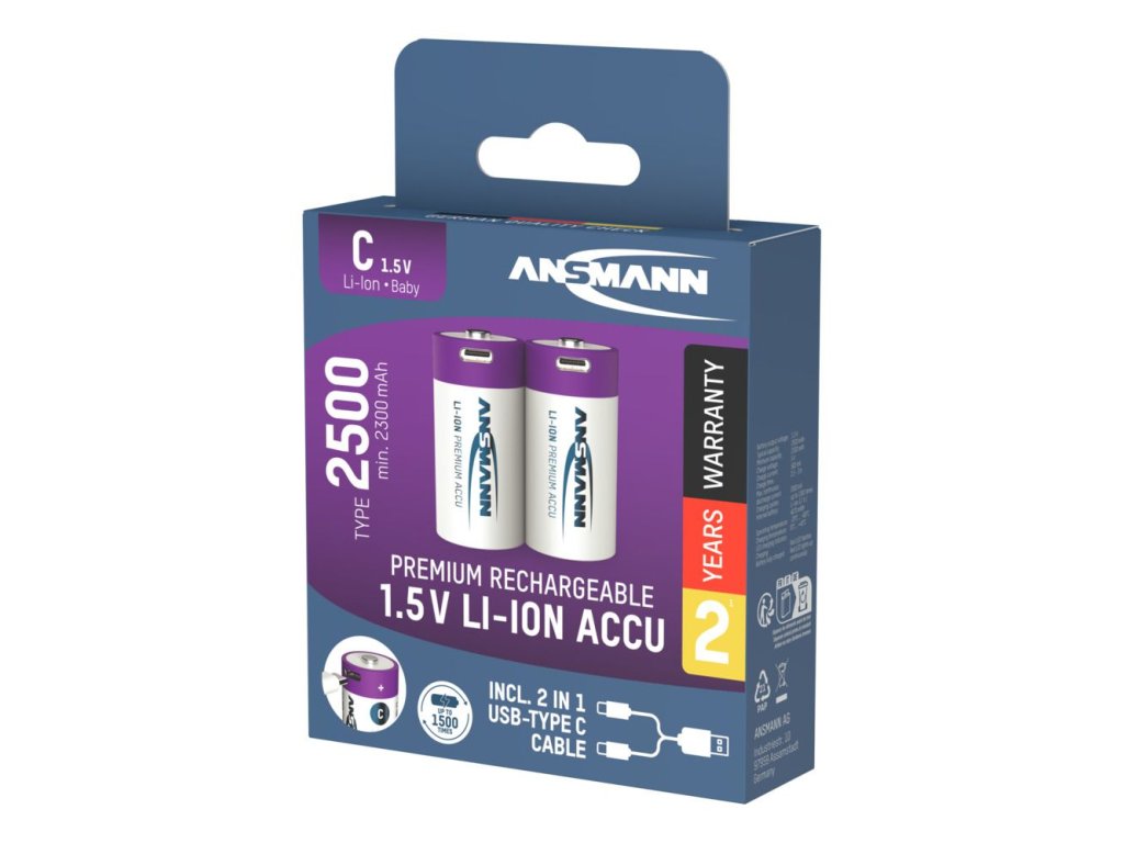 AKKU Baby/USB-C/2 C Li-Ion 1,5V 2500mAh USB-C Ladung 2er Pack