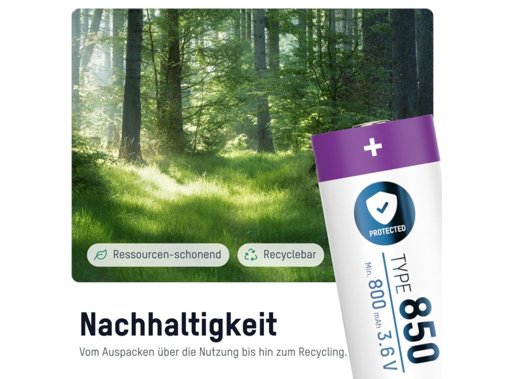Vielfältige Einsatzmöglichkeiten - Der hochwertige Lithium-Ionen Akku von ANSMANN ist ideal für den Einsatz in modernen Geräten wie LED-Taschenlampen, Stirnlampen, Laserstiften usw. Die Zelle besitzt eine Kapazität von 850 mAh und ist somit ideal geeigenet für „Stromfresser“ mit hohem Energiebedarf. Zudem ist der Akku über einen großen Temperaturbereich von -20°C bis +60°C einsetzbar.