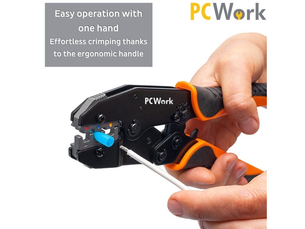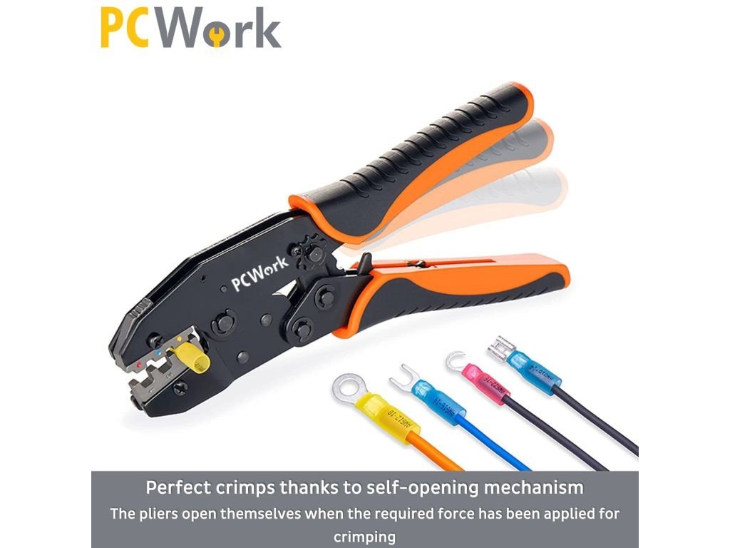 Crimpzange-LY2026N - PCWorkP CW04B Crimpzange mit Ratschenfunktion. Knarren-Crimp-Werkzeug für ein konsistentes Falzen isolierter Anschlüsse. Automatik Crimpzange mit Ratschenmechanismus zum crimpen von isolierten Terminals 0,5 - 6 mm² (AWG 22-16, 16-14, 12-10).