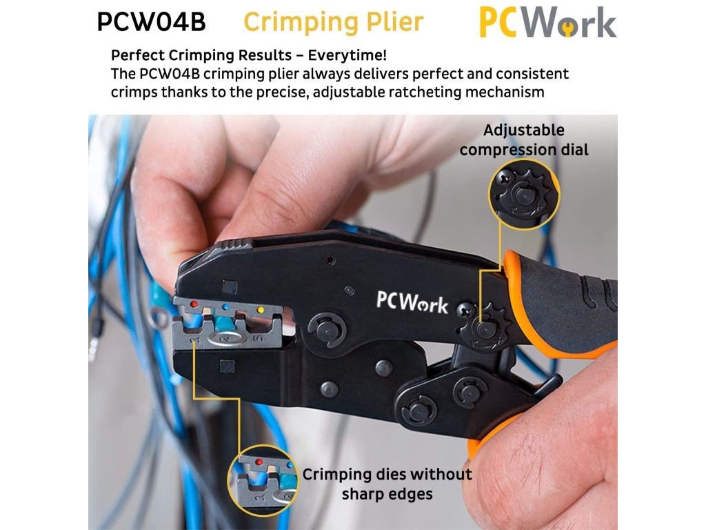 Hochwertige Verarbeitung und einstellbare Kompressionsstärke - die PCW04B Crimpzange besticht durch ihre hochwertige Verarbeitung, die eine präzise und zuverlässige Handhabung ermöglicht. Sie verfügt über eine einstellbare Kompressionsstärke, die es Ihnen ermöglicht, die Kraft der Zange genau auf Ihre Bedürfnisse abzustimmen. Dadurch erzielen Sie immer bestmögliche Crimp-Verbindungen.