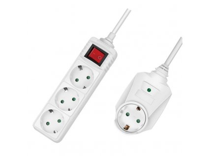EGB Geräte-Zuleitung (Schutzkontakt-Zuleitung), Netzkabel, Heissgerätekabel, 2 meter, PVC weiss mit Schuko-Winkelstecker und Gerätestecker mit 3 Flachbuchsen, Schutzleiter mittig.