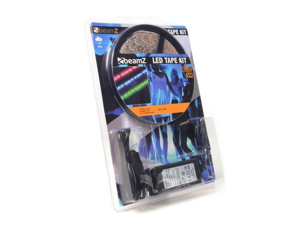 BeamZ LED Tape Kit 5m blau 60 LEDs/m IP65 - LED-Band, LED-Strip blau, 5m mit 300 SMD-Dioden und Netzteil. Wasserdichter (Strahlwasser, IP65), flacher flexibler LED-Strip im Silikonschlauch, teilbar. Ideal für direkte oder indirekte Beleuchtung im Haus (z.B als Beleuchtung hinter dem TV oder unter Regalen und Schränken oder im Außenbereich), am Fahrzeug (StVO beachten!) oder z.B. im Modellbau.