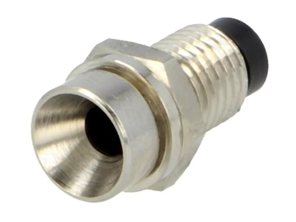 Torivac LED-Einbaufassung, Metallhalterung für 3mm LEDs mit Innenrekletor. Aus einem Gehäuse aus Messing mit Nickelschicht, einer Mutter und einer Unterlegscheibe aus vernickeltem Messing sowie einem Stecker aus Polyamid-6.