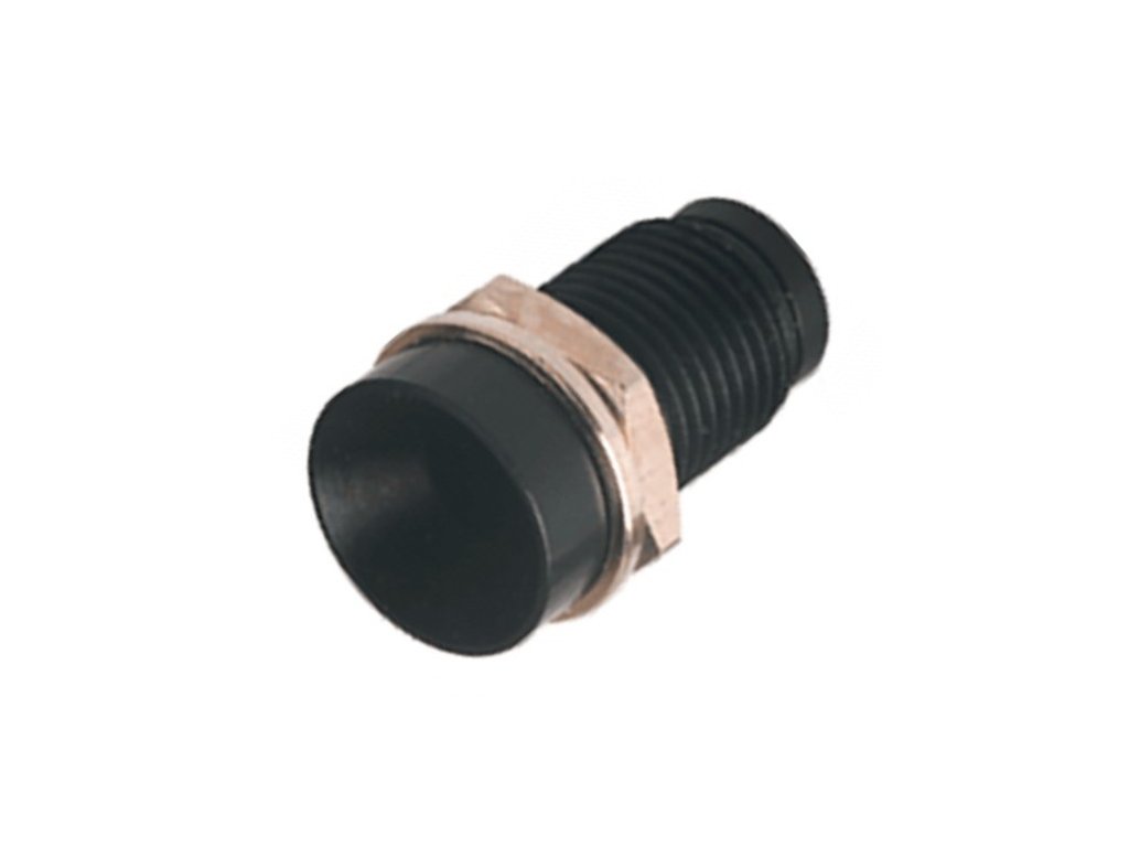 Torivac LED-Einbaufassung, Metallhalterung für 5mm LEDs mit Innenrekletor. Aus einem Gehäuse aus Messing mit schwarzer Eloxalschicht, einer Mutter und einer Unterlegscheibe aus vernickeltem Messing sowie einem Stecker aus Polyamid-6.