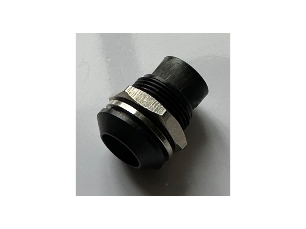 Torivac LED-Einbaufassung, Metallhalterung für 8mm LEDs mit Außenreflektor. Aus einem Gehäuse aus Messing mit schwarzer Eloxalschicht, einer Mutter und einer Unterlegscheibe aus vernickeltem Messing sowie einem Stecker aus Polyamid-6.