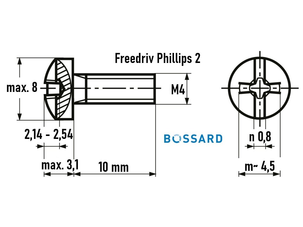 LSM4010 - Bossard Linsenschraube M4x10mm, Linsenschrauben «Freedriv» mit Schlitz und Kreuzschlitz Phillips Form H BN 1435, qualitativ hochwertige Verbindungselemente der Marke Bossard bei mükra electronic. Schrauben mit M4 Gewinde bis Kopf.