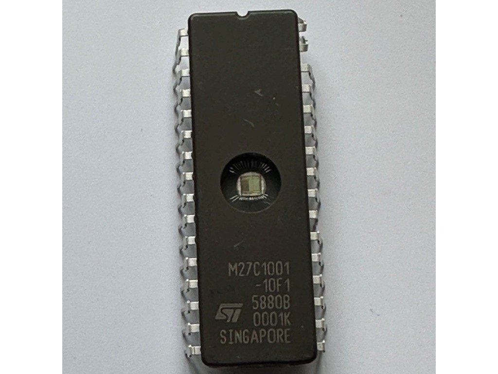 STMicroelectronics M27C1024-10F1 (27C1024-100) UV-Eprom-Speicher 100ns 1MBit 64kx16 DIP 40-pin 1.048.576-Bit (64kx16). Der M27C1024-10F1 eignet sich ideal für Mikroprozessorsysteme, die große Datenmengen oder Programmspeicher benötigen, und ist in 65.536 Wörter à 16 Bit organisiert. Das FDIP40W-Gehäuse (Fensterkeramik-Fritte-Versiegelung) verfügt über einen transparenten Deckel, der es dem Benutzer ermöglicht, den Chip ultraviolettem Licht auszusetzen, um das Bitmuster zu löschen. Anschließend kann gemäß dem Programmierverfahren ein neues Muster auf den Baustein geschrieben werden.
