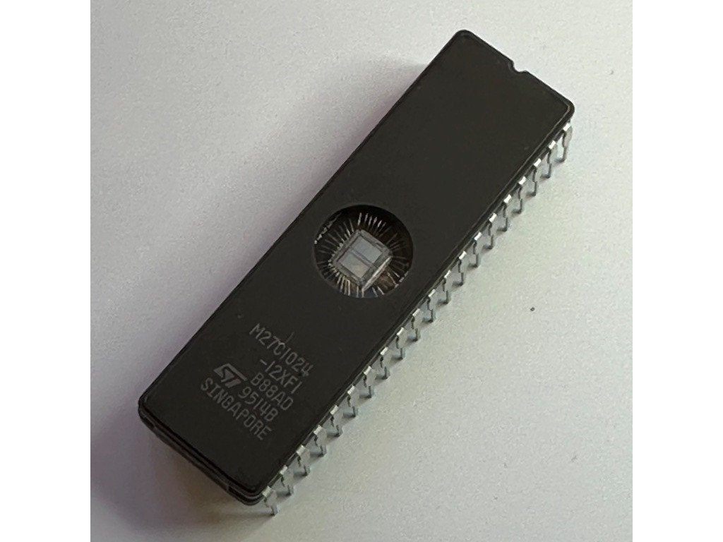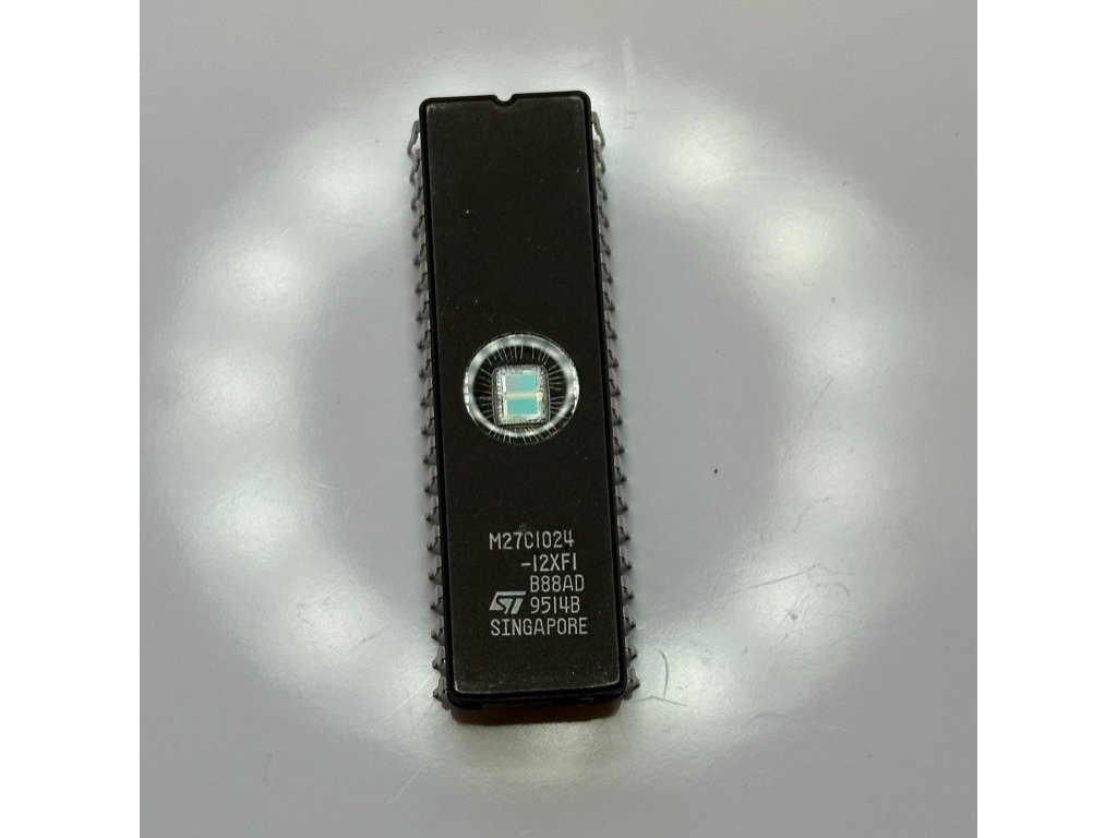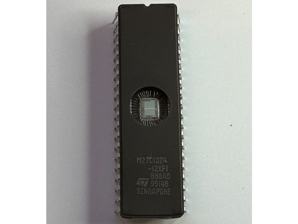 STMicroelectronics M27C1024-12XF1 (27C1024-120) UV-Eprom-Speicher 120ns 1MBit 64kx16 DIP 40-pin 1.048.576-Bit (64kx16). Der M27C1024-12XF1 eignet sich ideal für Mikroprozessorsysteme, die große Datenmengen oder Programmspeicher benötigen, und ist in 65.536 Wörter à 16 Bit organisiert. Das FDIP40W-Gehäuse (Fensterkeramik-Fritte-Versiegelung) verfügt über einen transparenten Deckel, der es dem Benutzer ermöglicht, den Chip ultraviolettem Licht auszusetzen, um das Bitmuster zu löschen. Anschließend kann gemäß dem Programmierverfahren ein neues Muster auf den Baustein geschrieben werden.
