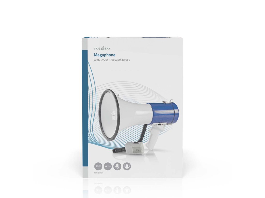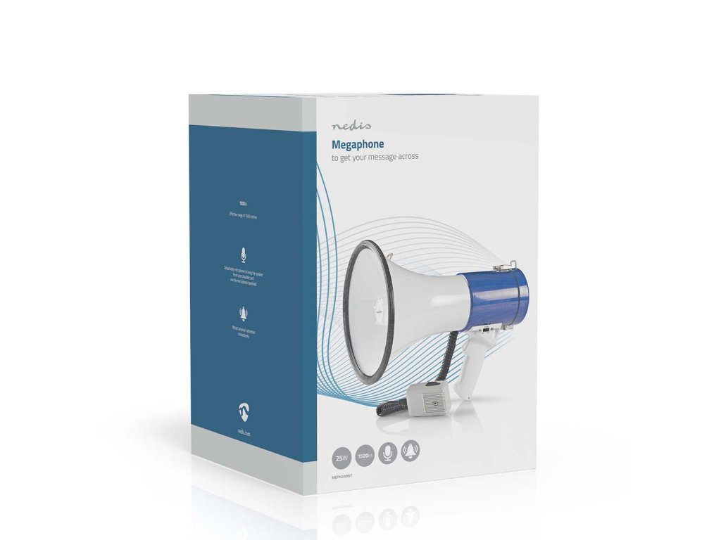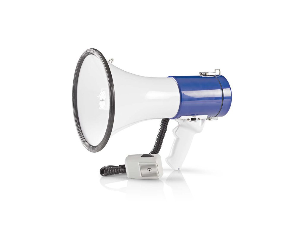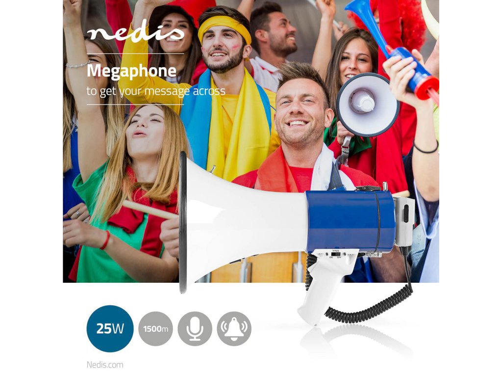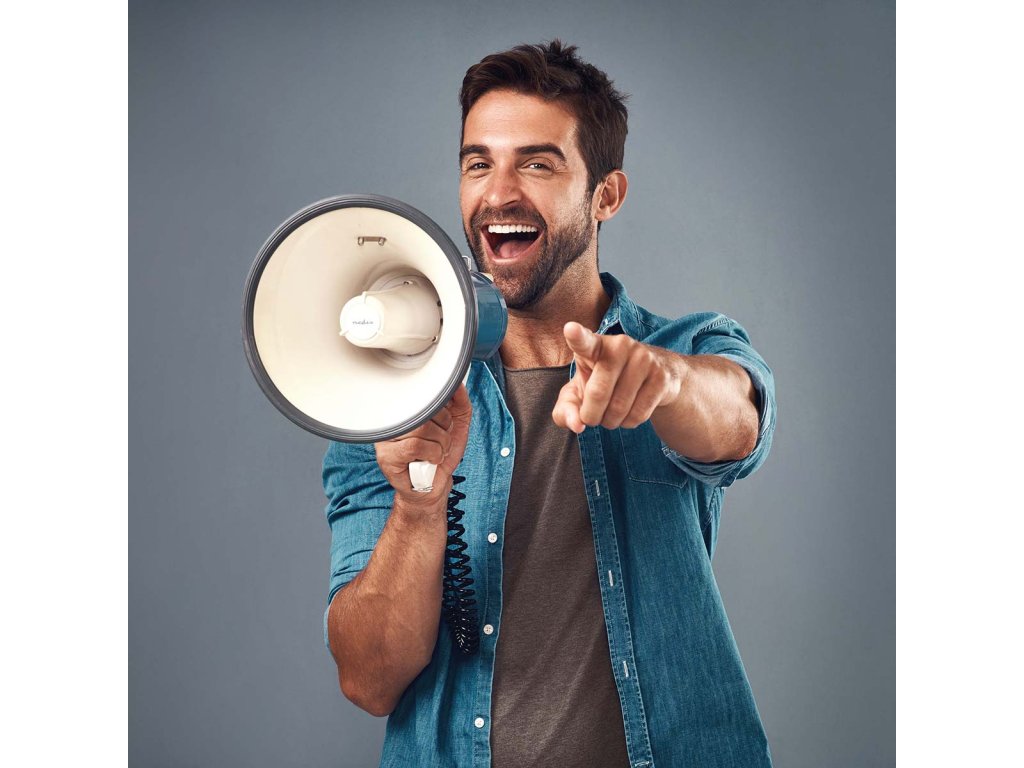 Profi-Megaphone - Handmegafon mit Tragegurt, mit diesem leistungsstarken Nedis Megafon mit eingebauter Sirene verschaffen Sie sich auch in großen Menschenmengen Gehör. Sehr effizient bei großen Veranstaltungen, Evakuierungen sowie in anderen Situationen, in denen viele Menschen gleichzeitig angesprochen werden müssen. Müssen Sie längere Zeit sprechen? Tragen Sie das Megafon einfach mit dem enthaltenen Tragegurt über der Schulter und nehmen Sie das Mikrofon ab, um es mit der Hand zu verwenden.