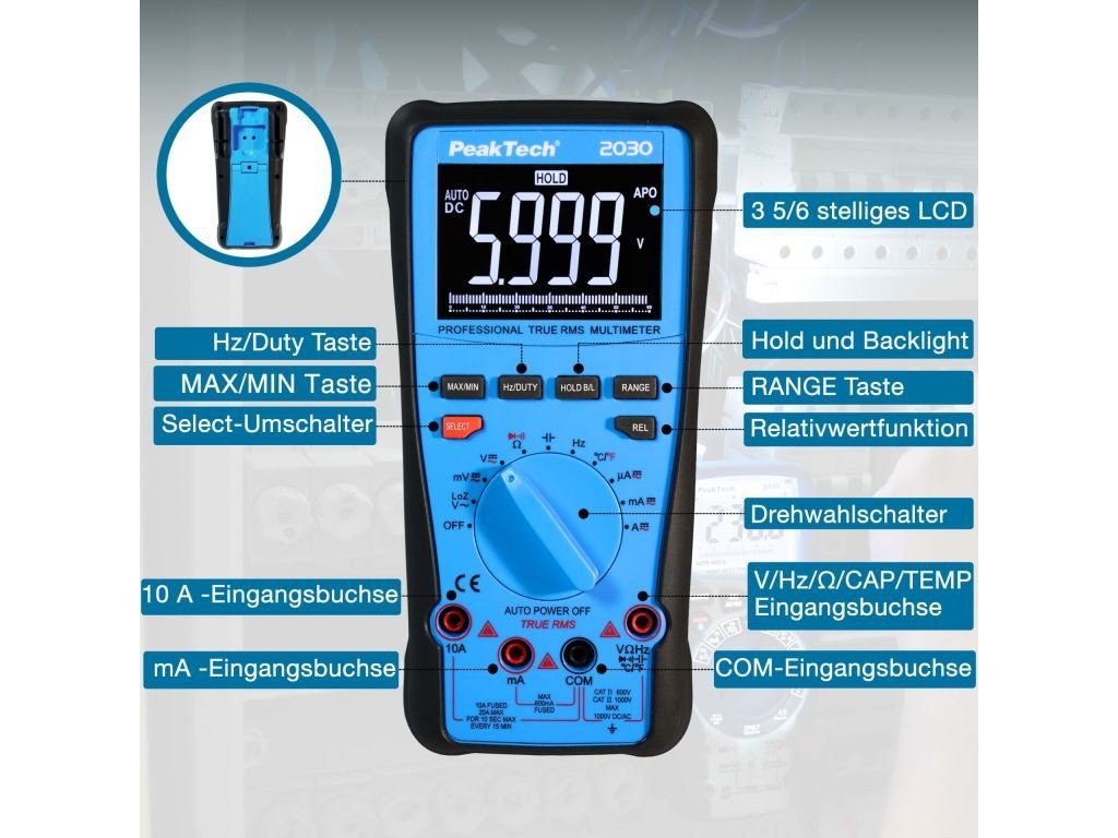 PeakTech® P2030 TrueRMS Digitalmultimeter 1000V 6000 Counts