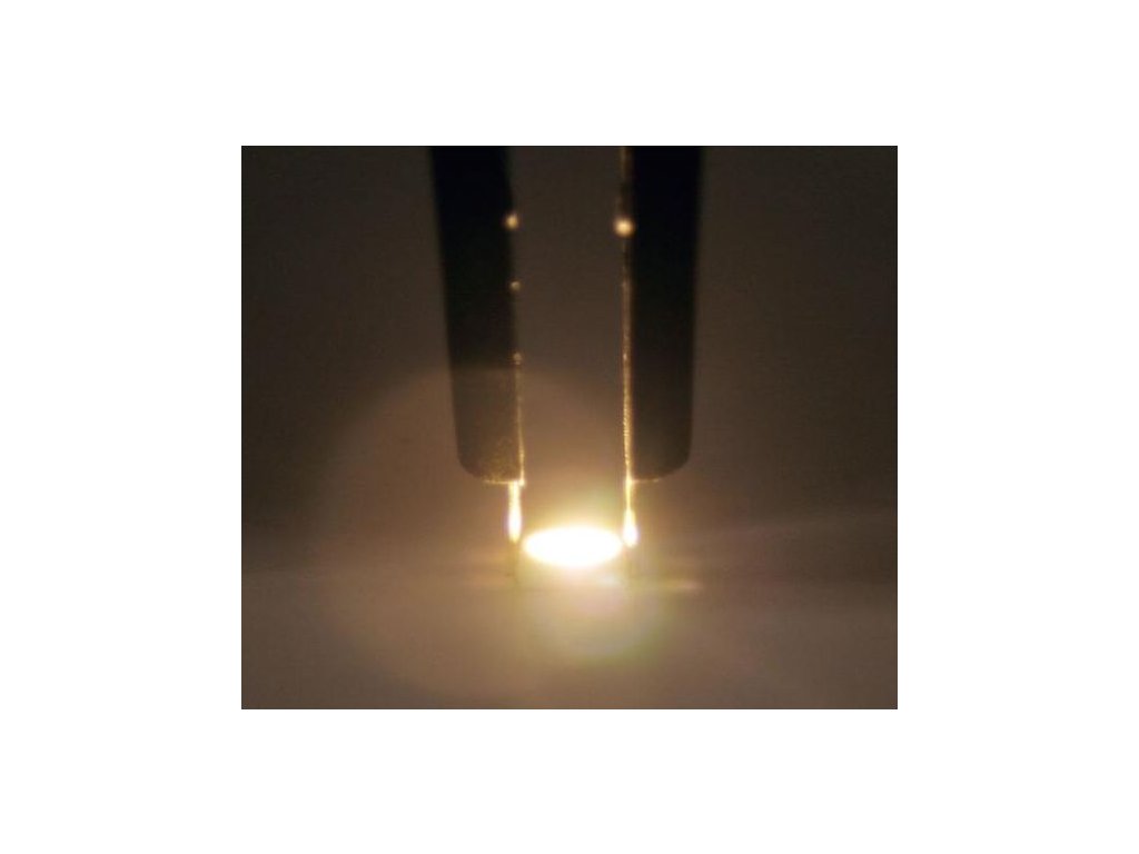 SMD-Leuchtdiode, LED, 5050, diffus, warm-weiß, 4200mcd. Besonders wegen ihrer kleinen Bauform mit dennoch enormer Lichtleistung eignen sich diese LEDs als Hintergrundbeleuchtung von Armaturen, Schalttafeln usw. Die LED besitzt 3 Leuchtchips, die auch über die 3 Pole separat ansteuerbar sind, wodurch 3 Helligkeitsstufen der LED realisierbar sind. Somit erhalten sie maximale Lichtausbeute bei minimalem Platzbedarf. Durch die gelb eingefärbte, diffuse Linse und den Innenreflektor, wird der Lichtaustritt sehr schön vernebelt, wodurch ein riesiger Abstrahlwinkel, ohne große Schatteneffekte entsteht. Die Kathoden (-) befindet sich an der abgeschrägten Gehäuseseite. Die LEDs lassen sich trotz der kleinen Bauform noch von Hand verlöten. Eine Automatenbestückung für Serienfertigungen ist durch die praktische Verpackung ebenfalls möglich.