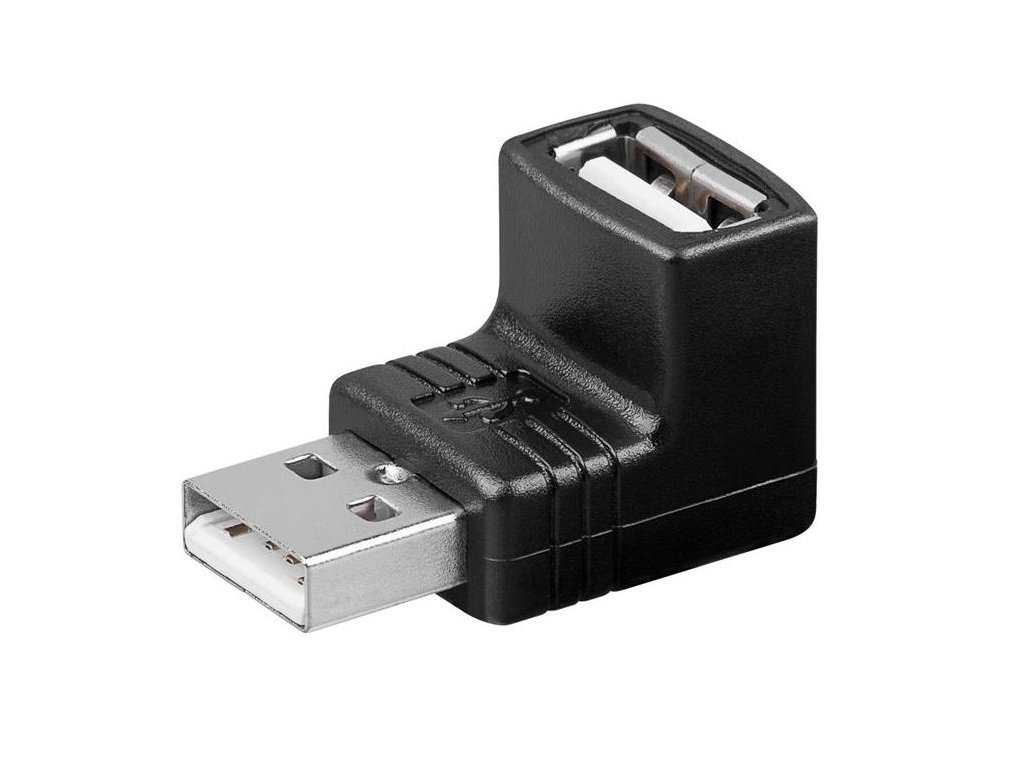 Goobay USB 2.0 Hi-Speed Adapter, "A" Stecker > "A" Buchse, 270° abgewinkelt. Dieser Adapter ist dann eine praktische Lösung, wenn USB 2.0 Kabel an sehr engen Stellen mit Geräten verbunden werden müssen. Verhindert außerdem Kabelbrüche.
